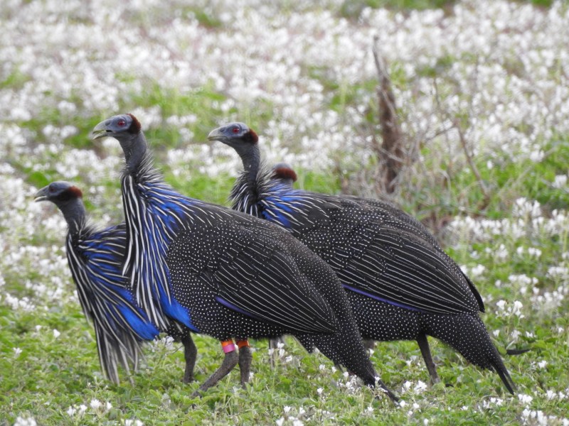 When working closely with wild animals it is necessary to plan your schedule and your activities according to theirs. I always wake up before them (5:20) and go to bed after them (21:30). Trapping and ringing vulturine guineafowl is a process we have developed based on the birds’ peculiarities and needs — we have to constantly think like them. For example, we have to be sure we don’t leave ropes and poles lying around since they look like snakes and make them avoid the area (the opposite of what we want!). Habituating a group so that we can follow them on foot takes ages, but if a new member joins a habituated group, we have to change all our plans and data collection routines in order to give time and space for the newcomer to adapt.